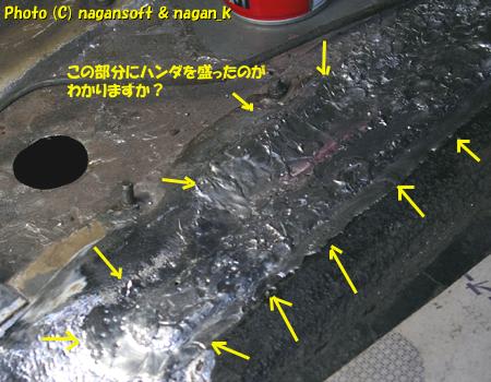 R-2君、運転席床とセンタートンネルとの境界線辺りにハンダを盛った
