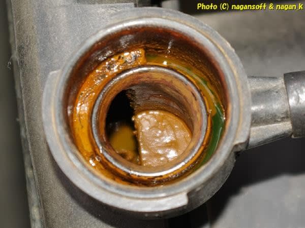 この茶色が細い管にもいるんだろうなー。ってラジエータキャップを外すたびに思うのよね。
