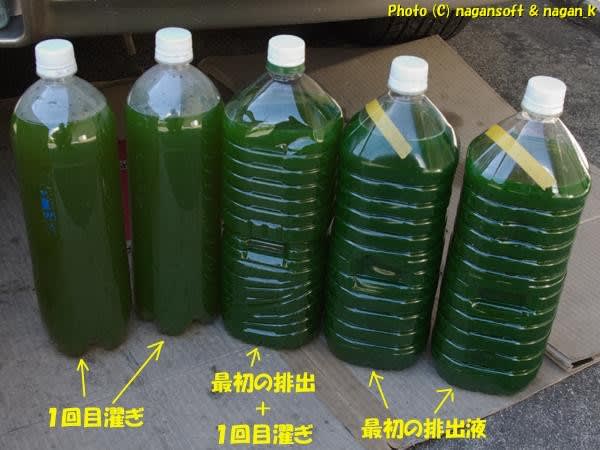 さてさて、濯ぎは3回ぐらいしないと緑色は抜けないのですが、今回は時間が取れないので1回だけの濯ぎにしています。