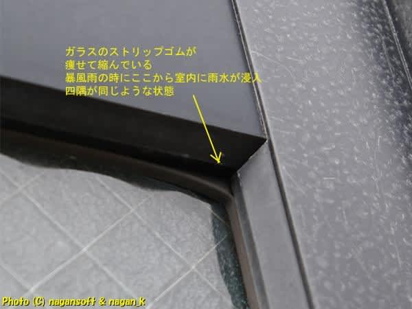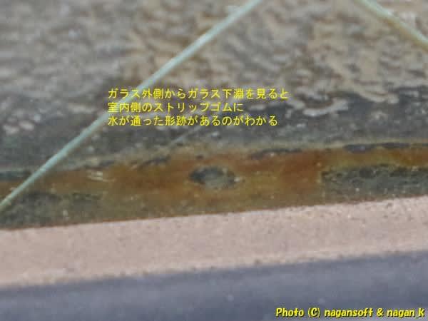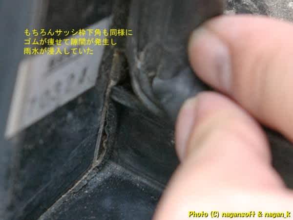 ガラスのウェザーストリップゴムが肉痩せしてその隙間から水が侵入するのです。