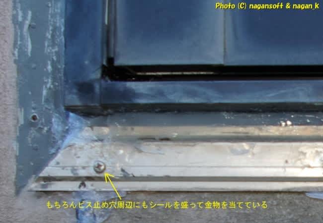 下辺は、シート押さえ金物を取り付けてさらに金物の上側に当たる部分にシリコンシールを塗りました。