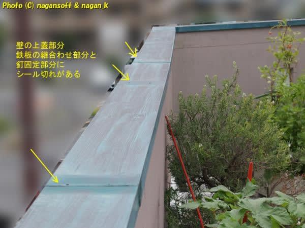 コの字鉄板が被っています。その鉄板の継ぎ目と家屋躯体への固定部分に問題個所が発生しています。