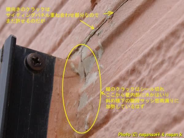 このクラックが雨漏り盛大の階段窓より高い位置なのよね。