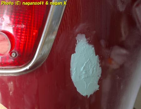 もっと広範囲が全体的に凹みぎみに歪んでいたことを、パテを砥いで知りました。