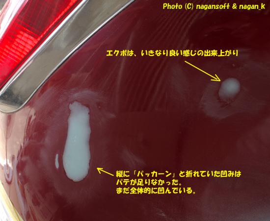 V字に海峡ができていた大き目のへこみ部分は、パテ盛りが根本的に足りませんでした。