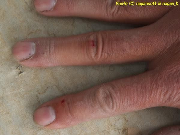 とりあえず支障の無い指裂傷の写真を貼っておこう。