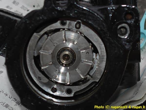 ベーンポンプのサイドプレートを被せたところ。