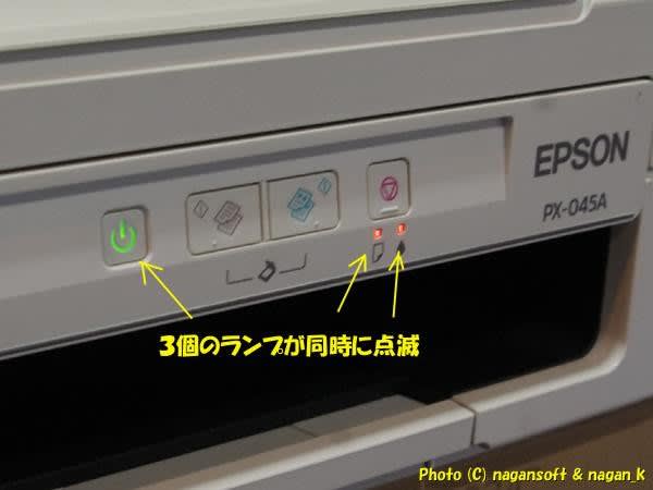 症状としては、電源ランプ・給紙ランプ・インクランプの3つのランプが、同時に点滅して、何の制御も出来ない状態です。