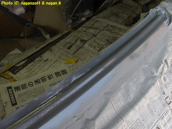やっぱりコーナーの端まで、つまり室内側鉄板の先端まで切り取るのがベターかなー。