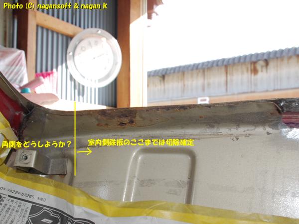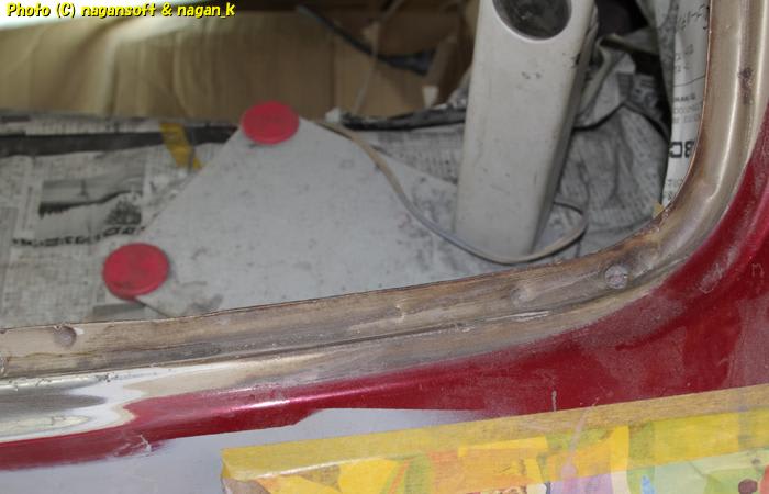 続けてリヤガラスはめ合い部下側部分を、右側へ切り開くのですが、今から作業するとねー….