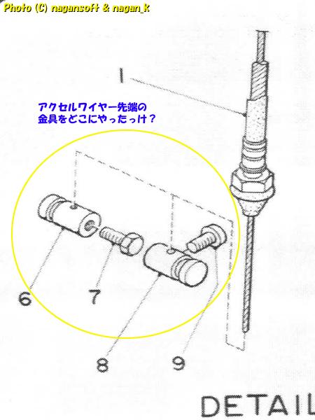 さてさて、アクセルワイヤーの先端タイコを探さなければ…