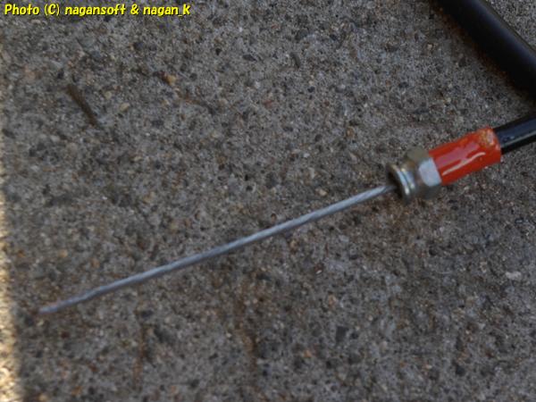 そうそう、アウターがダメなので部品取りワイヤーのアウターを蘇生したままだった。こいつの芯線を入れ替えるということでしたな。