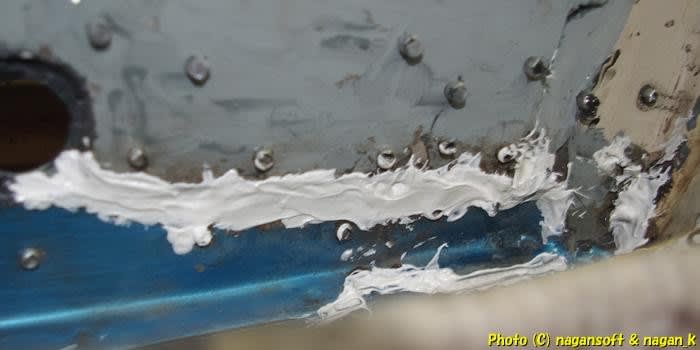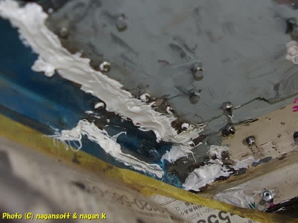 パテでもいいかなーと思ったのですが、この部分って意外にたわんだりする可能性もあるかなーと用心してシーリングにした次第です。