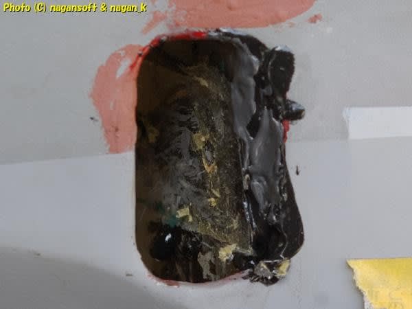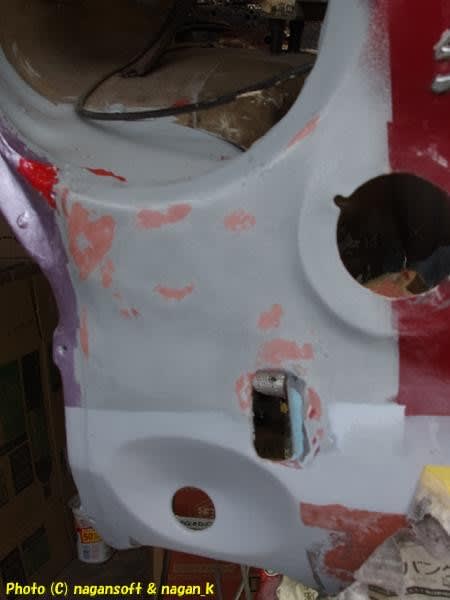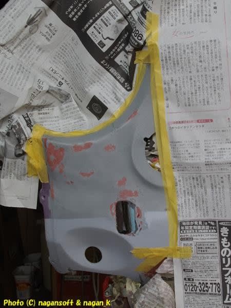 ついで仕事です。かなり昔に薄付けパテをなすって放置したままの部分を簡単に磨ぎました。