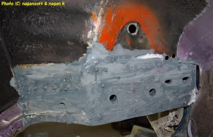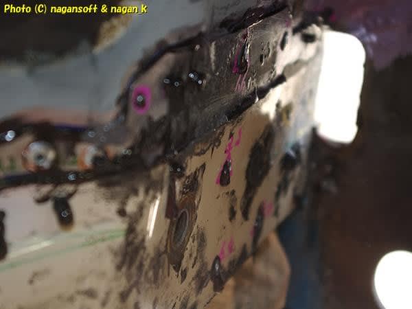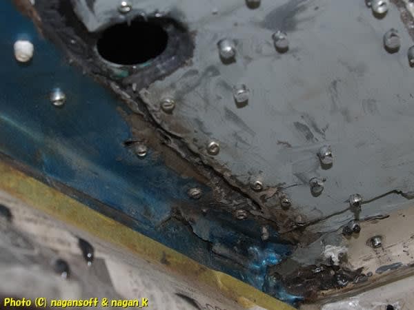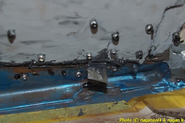 前回に鉄板合わせ部分に深い隙間があり、そこにボンドを入れつつ隙間充填の鉄板差し込んでます。そこからの続きです。