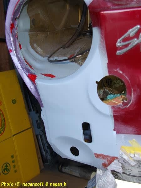 パテが硬化するまでの時間をフェンダー内側の作業です。