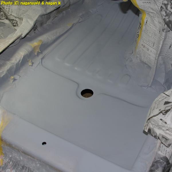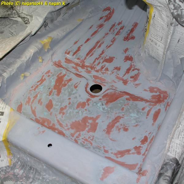 まずは、昨日にプラサフを吹いてリセットした床です。
