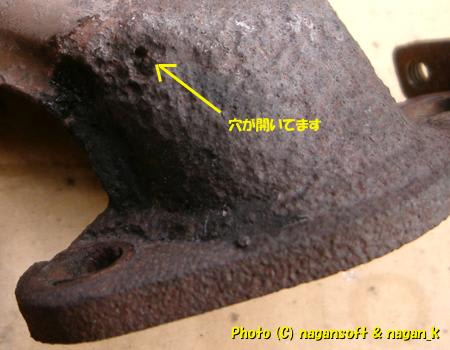 それより穴塞ぎをどうするかですねー。ハンダ鈑金で済めば簡単なのだけど、エキマニって高温でしょ。きっとハンダ鈑金はダメだと思うのよねー。