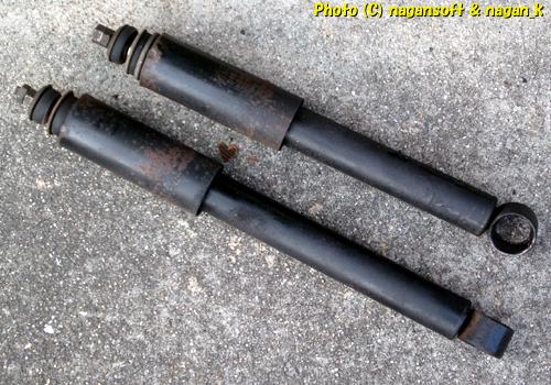 せっかく、エンジンルームに入ったのだから、リアショックも外してみました。