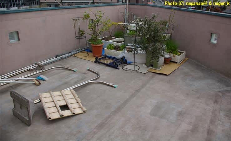 屋上にプチ家庭菜園があるので、一度に全面塗装することができません。