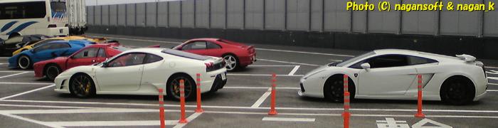 そうそう、神戸まで阪神高速を走って行ったのだけど、道中の中島PAにて、フェラーリ+ランボルギーニの走行会と思われるチームと遭遇した。
