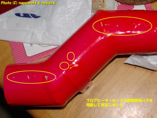 ついでに、フロアヒーターダクトの新聞張り子にしてしまった部分もサンドペーパーで研ぎました。