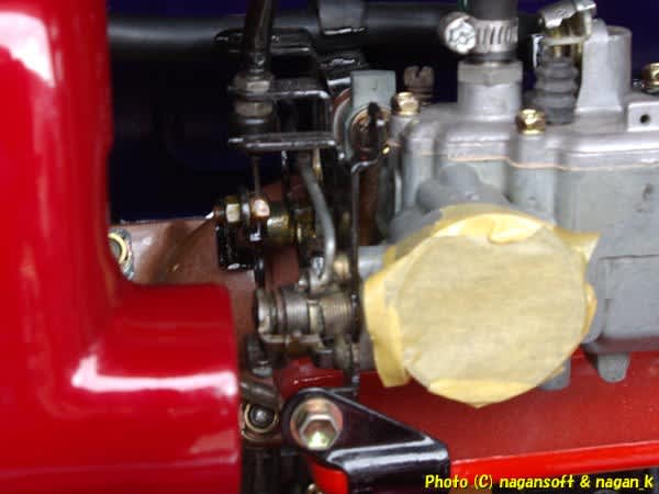 奥にあるアクセルワイヤーとチョークワイヤーのリンクを、先にすましておいた方がいいよなとなりました。