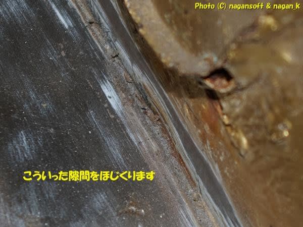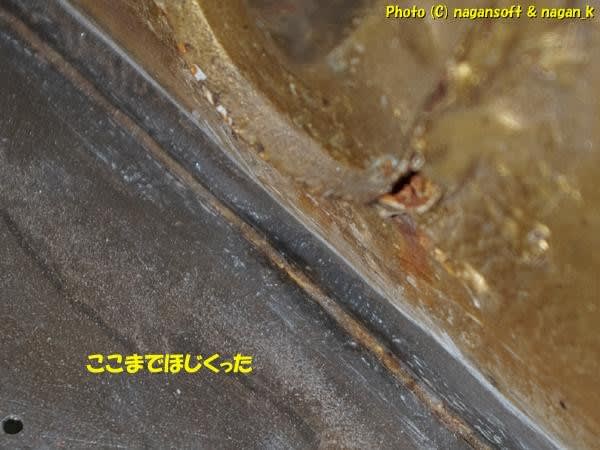 なるだけ錆を落とすように、リューターの刃先が届くところまでほじくりかえしてみました。