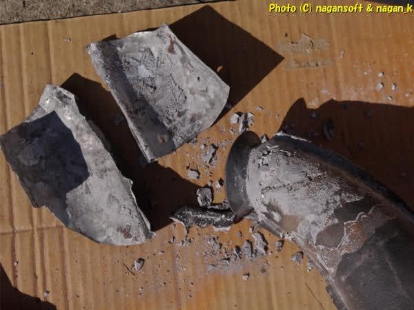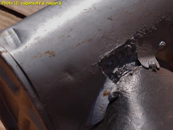 私が叩いて作ったカバーが、叩いた部分に強烈錆発生し裂傷ってことです。