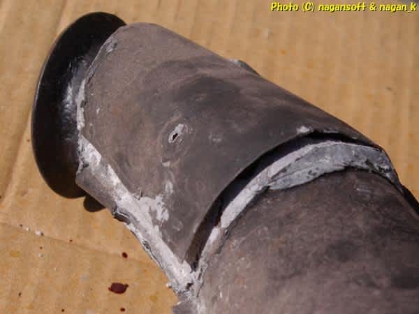 マフラーパテ入れて鉄板を捲きつけて剥がれないようにしていたのですが…