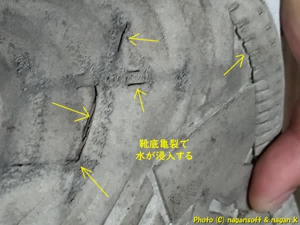 つまり、靴底から靴中へ道ができちゃっている。
