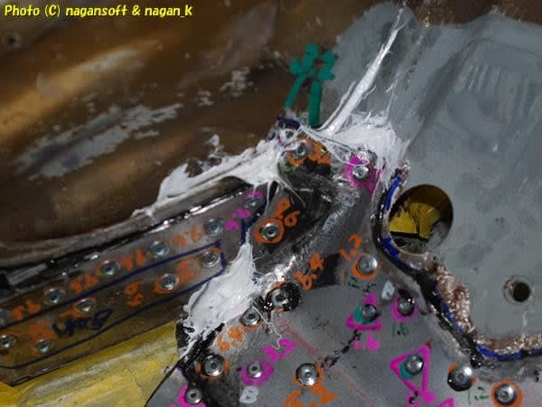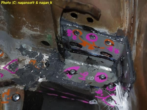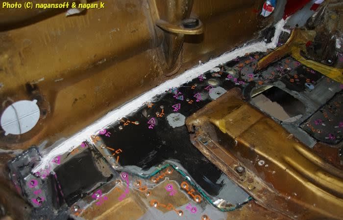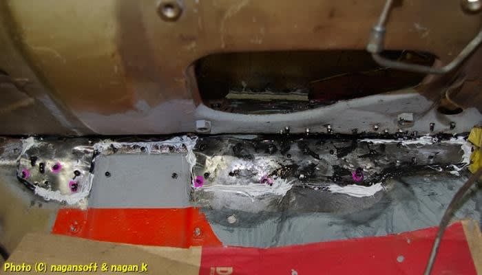 ペダルボックス下鉄板と右フェンダーエプロンとの接続部分はこうなりました。