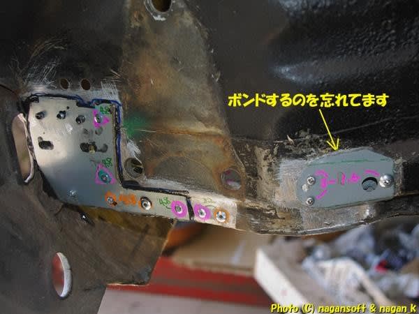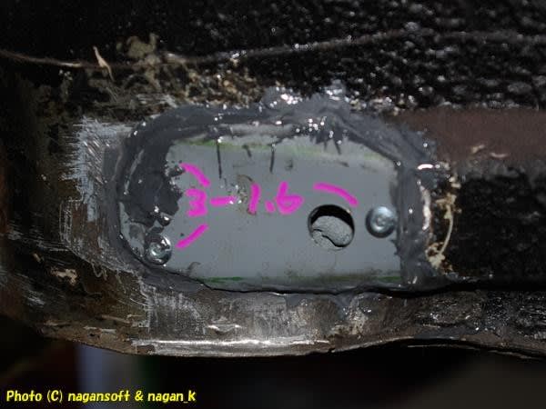 助手席側バンパーブラケット固定ボルト通し穴鉄板と、車体の強度折り接触部分はこうなりました。