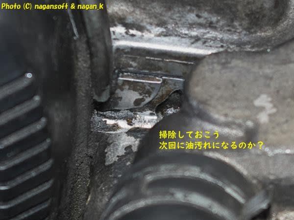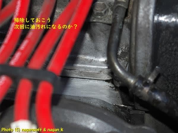 エンジン前側の両サイドがオイリーというのかな?汚れているんです。