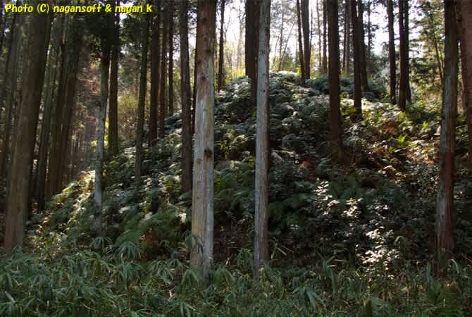 こんもりした小山に群生するシダにあたる木漏れ日がなんかいい感じだなー。ってパチリです。もちろん道路の横に広がる光景です。