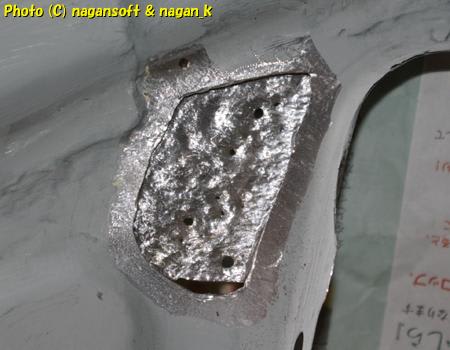 シート下の床なので室内からハンダ鈑金で穴をふさぎます。