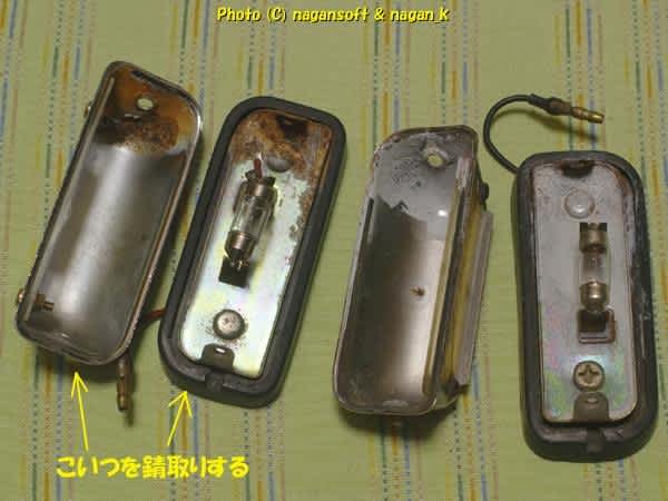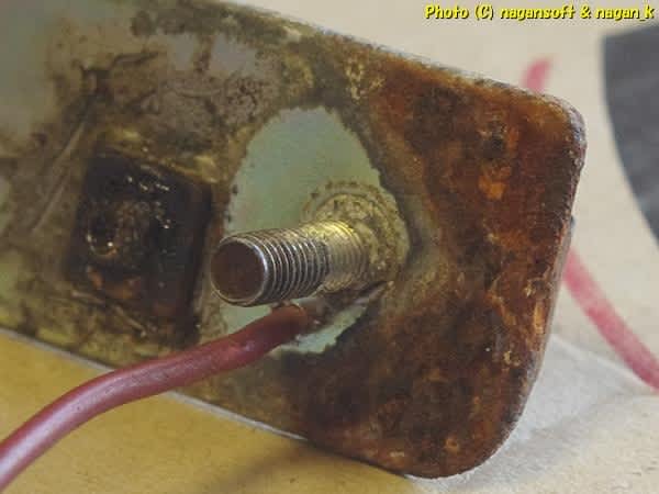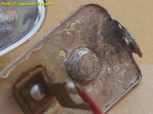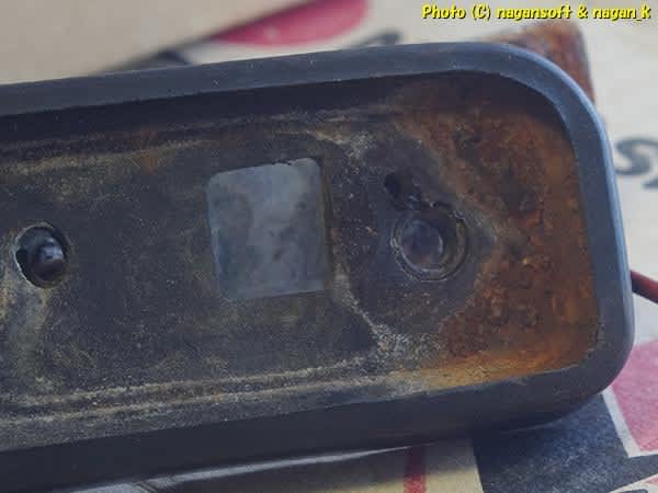 ライセンスランプのカバー部分、それの内側も錆てますよ。