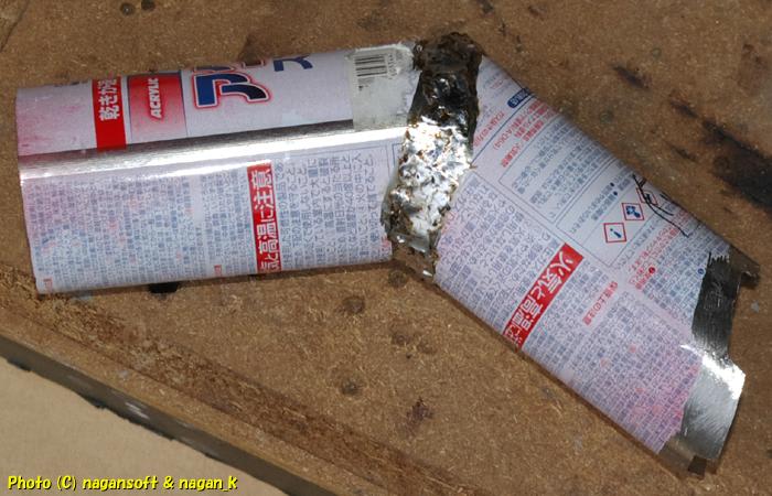 ラッカースプレー缶を切り刻んでいるので内側はラッカー塗装になっているのはすでにブログに書いてますね。