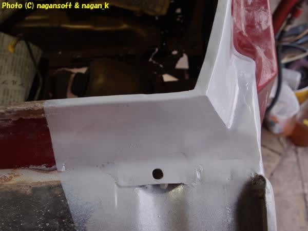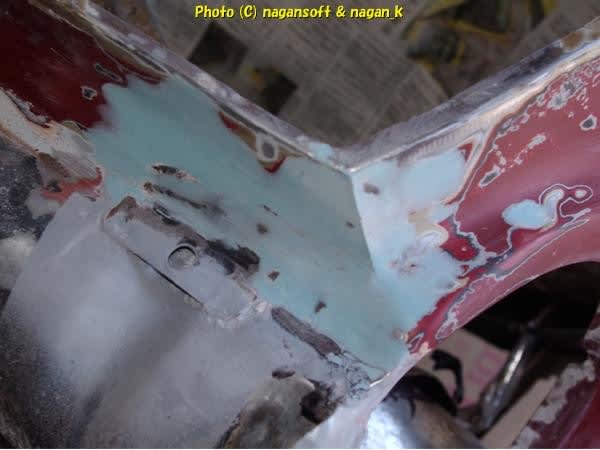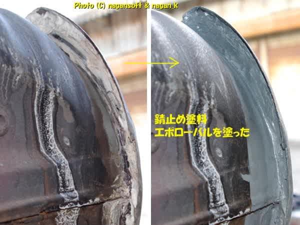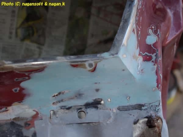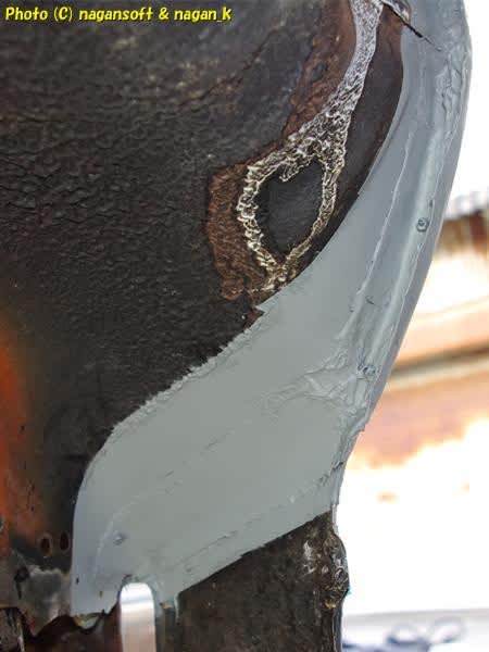 鉄板合わせ部分にパテを盛るのは耐久性を考えるとどうなんだろう。でもニキビ肌のままだと埃と水が溜まって錆がすぐに呼び寄せられるよ。