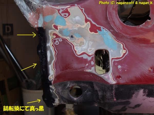 錆取りして錆転換して真っ黒に反応してますよ。