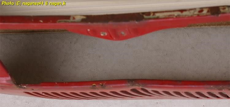 錆を削ってパテ整形して、白色下地塗装して赤色に塗装されてます。