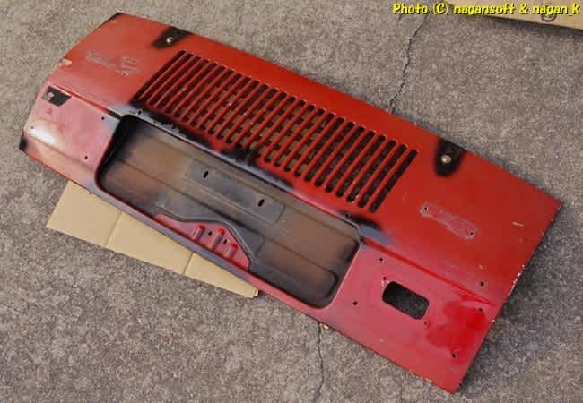 そもそもフード開閉時に手をかける部分なので、塗膜が削れて錆が先に発生したのとちゃうかなー。