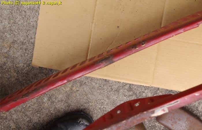 曲がり箇所にパテが見え隠れしているので、錆腐食が先なのかな?