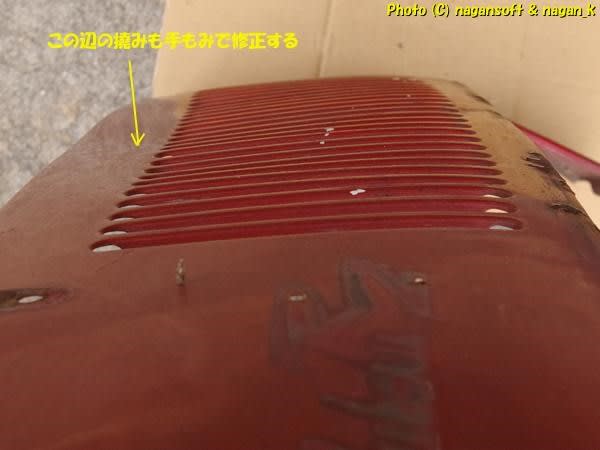どう?10分ほどのいい加減素人板金にてそれなりの形に戻ったでしょ?