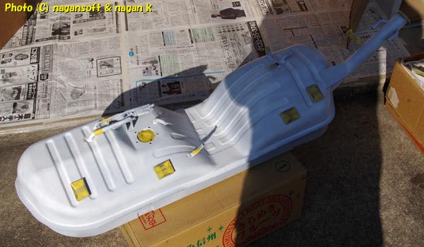 まずは、燃料タンクの裏面を、艶がでるようにペイントです。