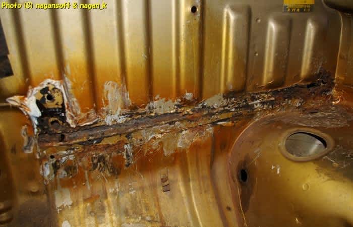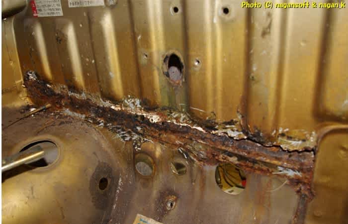 ちゃんとコーキングほじくったところは錆穴ドカンですよ。