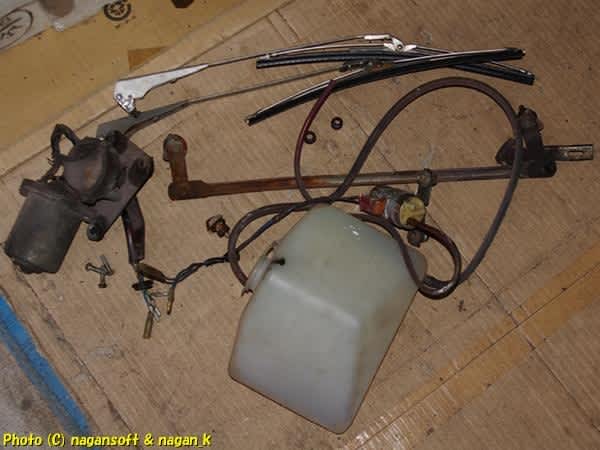 バルグヘッド内の、ワイパーモーター、ワイパーリンク、ウォッシャーモーター、ウォッシャータンクです。本日は折れボルト発生無しの良い1日でした。