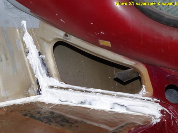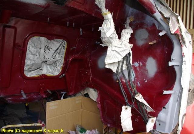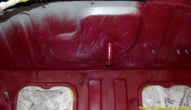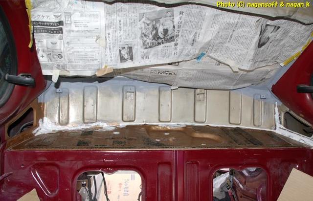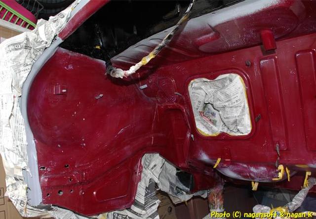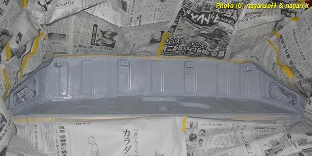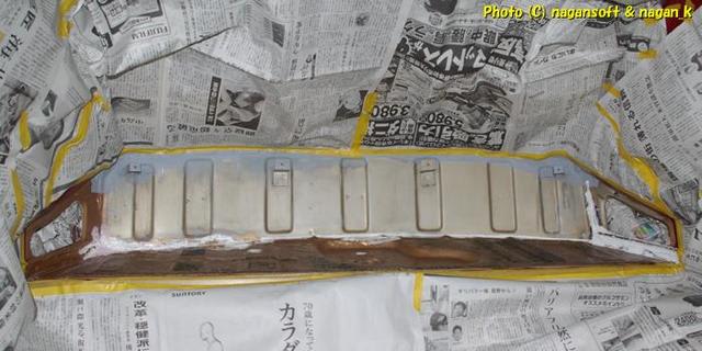 よーく。回りを掃除して、塗装下地の研ぎ忘れがないか点検してから、いつもの新聞マスキングです。