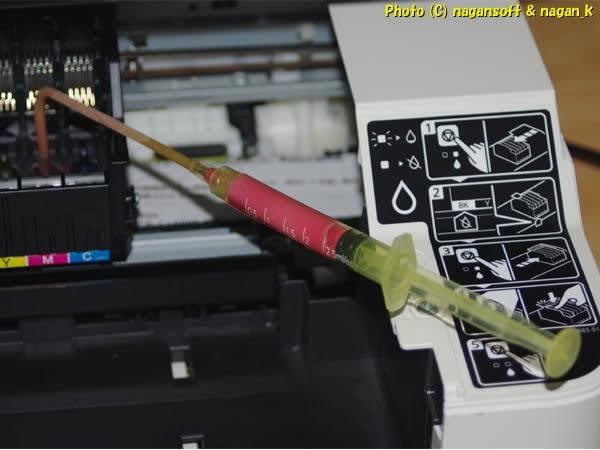 イエローとマゼンタをお掃除です。ブラックとシアンは印字できていたので手を加えません。
