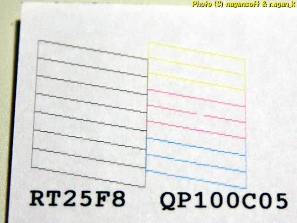 2週間ほど放置した状態にて、インクが浸透したことで詰まりが融解していないかの期待をこめてテスト印刷。洗浄後のちょっと残りつまりなら1週間ほど放置したら新しいインクで融解するパターンがままあるのよね。